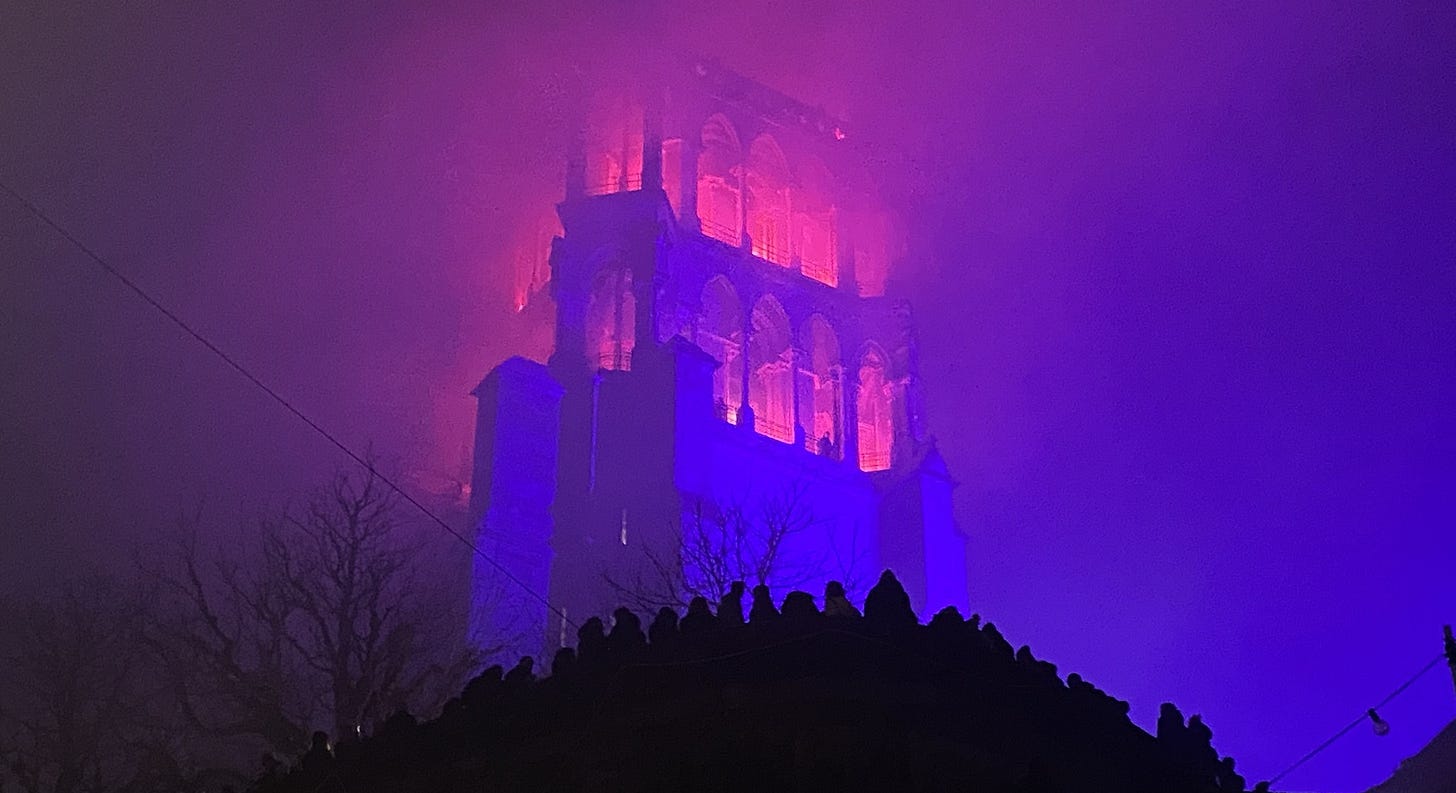 Exactly 12 months ago, we were celebrating New Year’s in Lausanne at the Burning Cathedral. Since 1904, rather than fireworks, the city of Lausanne has illuminated its large central cathedral with red lights and smoke effects to make it look as though the cathedral is on fire.